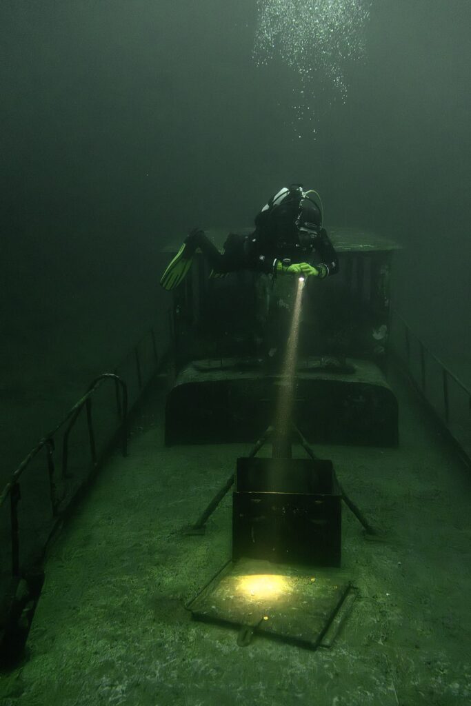 The visibility was absolutely fantastic, and combined with the bright sunlight it made for some stunning dives to cap what’s certainly been an eventful year for Arden Divers. We were treated to rarely seen views of the whole length of the Stanegarth, of ducks diving on the ledge, and reminded just how close so many of the attractions at Stoney are to each other. And, of course, there were lots of opportunities to try out our diving related Christmas presents.